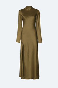 Featured in the Resort 25 Collection Long sleeve bias dress in our luxurious doubleface satin fabrication. This style is among our bestselling and can easily take you from season to season. - Material: 61% Acetate, 39% Viscose - Fit: True to Size - Care: Professional Dry Clean Only - Model is 5'11" and Wearing a size 2