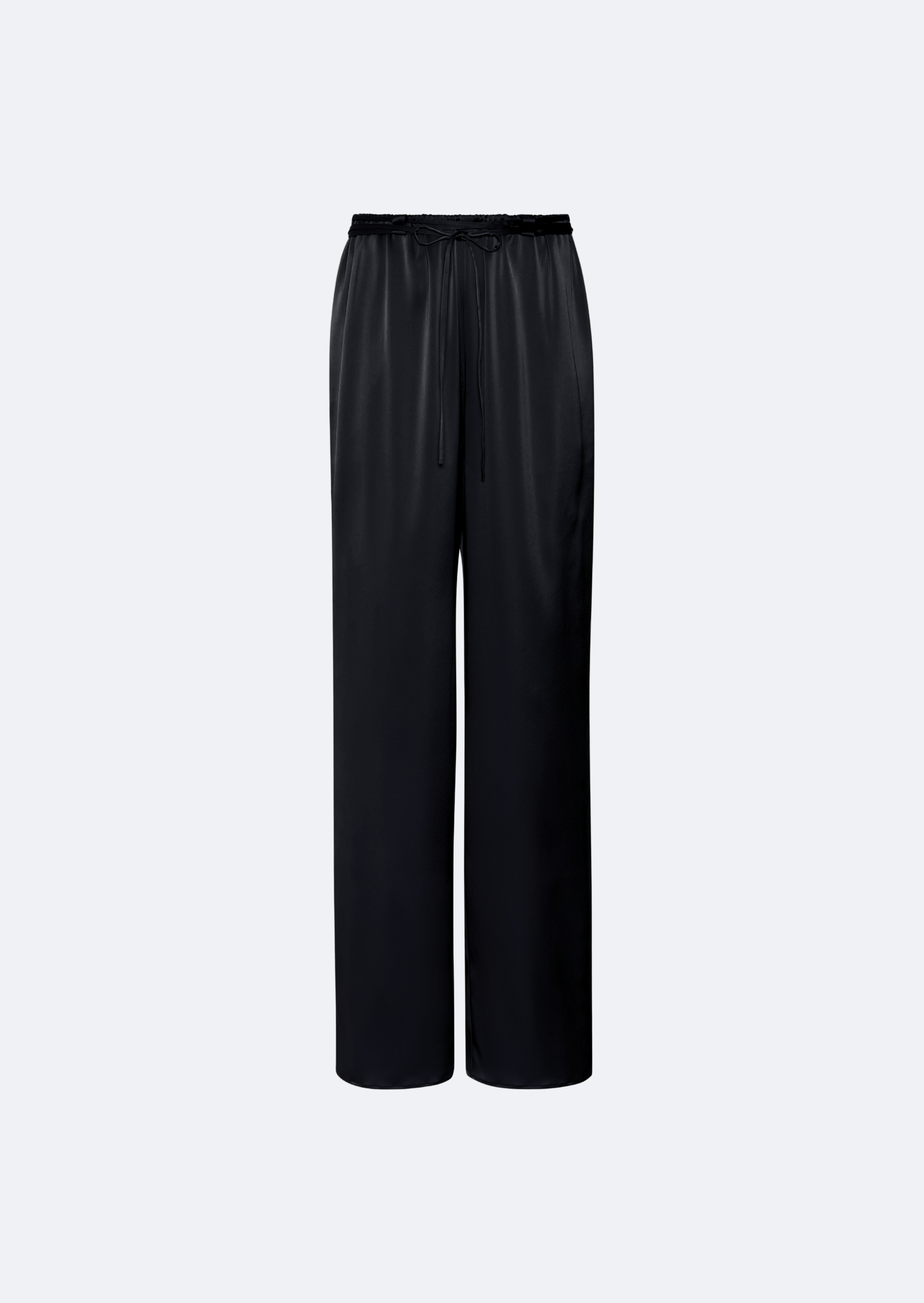Doubleface satin straight leg pant with drawstring waistband. Relaxed fit. - Material: 61% Acetate, 39% Viscose - Care: Dry Clean Only