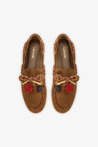 The Mediterranean never looked so chic! Boat shoes are back on trend, and the Cyprus brings a fresh, modern twist. Crafted in soft suede with colorful laces and playful pompoms, it’s stylish, ultra-comfortable, and easy to wear from day to night. Perfect with straight-leg denim on casual days or dressed up with midi skirts and relaxed tailoring. Try it with visible white socks for a bold fashion vibe, or go sockless for a clean look. - Russet - Heavy suede leather - Closed round toe - Removable adornments - Lace-up closure - Perfectly fitted rubber sole for support, durability, and comfort - Insole with memory foam cushion and hot stamp logo - Handmade in Brazil - SKU: L545-CYPR-RUSS-2402
