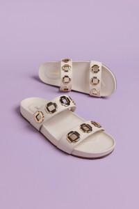 A riff on Summer's must-have sandal silhouette, these new Milan slides are a newfound favorite. With a comfortable rubber footbed that makes it both durable and perfect for sand and sea, these are the sandals you'll want to slip into any time the temps rise. - Ivory - Kid skin leather - Open round toe - Perfectly fitted rubber sole for support, durability, and comfort - Insole with memory foam cushion and hot stamp logo - Handmade in Brazil