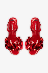 All we want this season is… brand new shoes, because the Holiday Drop is here to add some party-ready glam to your looks! The Morgan is pure celebration: reimagined in scarlet patent with its commanding stiletto heel, it defines vibrant luxury. The voluminous sequin appliques are the statement that transforms this sandal into the essential piece for shining brightly. Pair it with a minimalist black slip dress to let the shoe steal the show, or go for total glam by wearing it with a shimmering set in neutral colors. - Scarlet - Patent leather - Open toe - Hand-stitched sequins - 95 mm (3.8 in) heel - Kid metallic leather lining - Finely crafted leather sole for support, durability, and comfort - Insole with memory foam cushion and hot stamp logo - Peel off the protector before using your shoe - Handmade in Brazil - SKU: L418-MORG-SCAR-1498