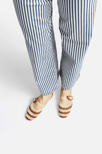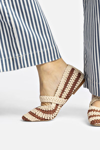 The Verona Crochet is the super artsy take on our best-selling ballet flat, featuring bold two-tone weaving and an oversized heart-shaped buckle strap for a secure, comfortable fit. Lightweight, textured, and full of character—a standout piece for everyday wear. Pair it with straight-leg denim and an oversized poplin shirt for an easy, polished look. It also complements flowy dresses for a relaxed weekend vibe. - Caramel and ivory - Crochet upper - Kid skin leather lining - Round toe - Adjustable strap - Tonal hardware - Finely crafted leather sole for support, durability, and comfort - Peel off the protector before using your shoe - Insole with Larroude Cloud memory foam cushion and hot stamp logo - Handmade in Brazil - SKU: L219-VERO-CARA-2552