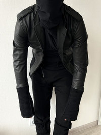 Rare runaway short bomber leather jacket with oversized sleeves. Made in Italy Shell: 100% Leather Lining: 50% Rayon / 50% Acetate + 100% Cotton In good vintage condition with minimal signs of wear Please check all photos before purchase All measurements provided in listing No trades