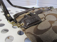 Coach Women's mini bag purse with zipper, two compartments, YKK hardware, monogram pattern, brand engraving Excellent condition Size 19x13 cm