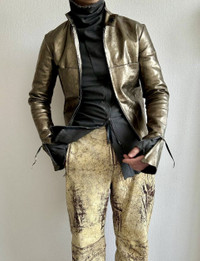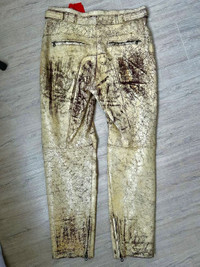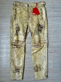 Size: 52IT All measurements provided in listing New/Never Worn P-Alan coated leather pants in crackled finish. Mid-rise Touch-fastening straps at waistband Zip-fly fastening Belt loops Side zip pockets Rear zip pockets Zip cuffs 100% Leather. Specialist clean Color: Gold