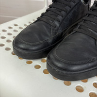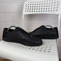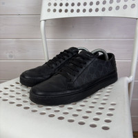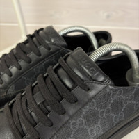 Gucci GG Supreme Men's black leather sneakers made of genuine leather, GG engraving around the perimeter, soft sole, made in Italy Excellent condition, minor nuances, sweating on the leather and on the heels, slightly worn sole Size 8 / 42-42.5
