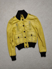 Gucci Madonna Jacket Cropped Iconic Bomber Pudded Shoulders Leather Good condition. Have signs of wear 42 size Shoulders 40 P2P 49 Length from the shoulder 50 Sleeve length 65