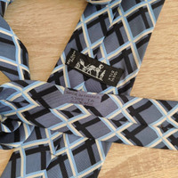Hermes Paris Silk Tie 5309 TA Geometry Blue