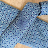Hermes Paris Silk Tie 5357 OA Geometry Blue