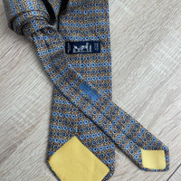 Hermes Paris Silk Tie 7700 OA Geometry Yellow