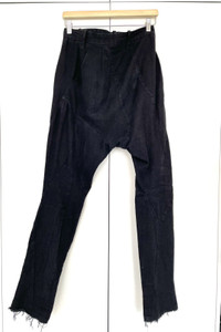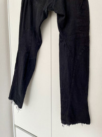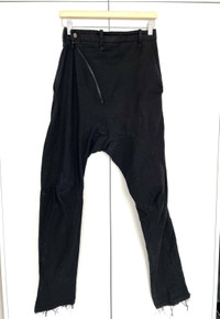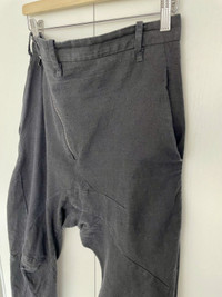 Leon Emanuel Blanck Distortion Pants. RRP: 1100€ Linen pants. Size 46 Maestro of broken lines and twisted forms. Perfectly tailored lines of the "double" knee. Asymmetrical zip. 4 zip pockets below the crotch. Riri zippers/Cobrax waist buckle. After washing, the inscription was erased, but if you look a little closer, you can notice it. Eternal and irreplaceable.