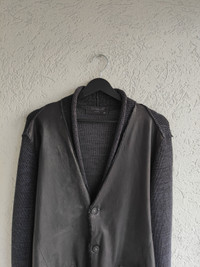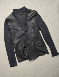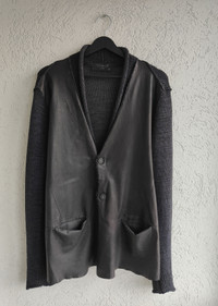 Transit Uomo Combined Blazer Jacket / Sweater Cardigan Leather, cotton and linen Knitted parts Perfect condition. Artificial again of the leather M size Shoulders 52 P2P 58 Length from the shoulder 70 Sleeve length 68