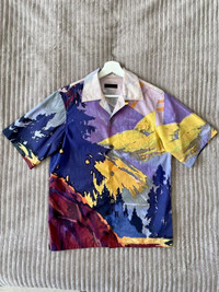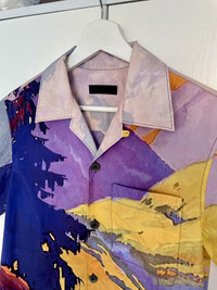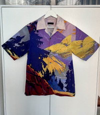 Prada Camp Collar Landscape Pattern Bowling Pocket Shirt