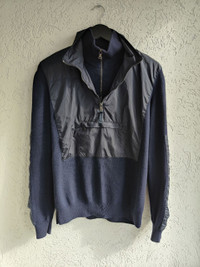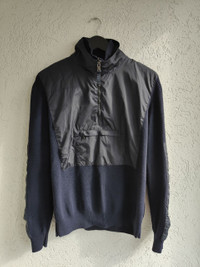 Prada Sweater Double Collar Red Tab Wool and Nylon 50 size Perfect condition. No flaws. Composition tag is cut Shoulders 48 P2P 55 Length from the shoulder 62 Sleeve length 63