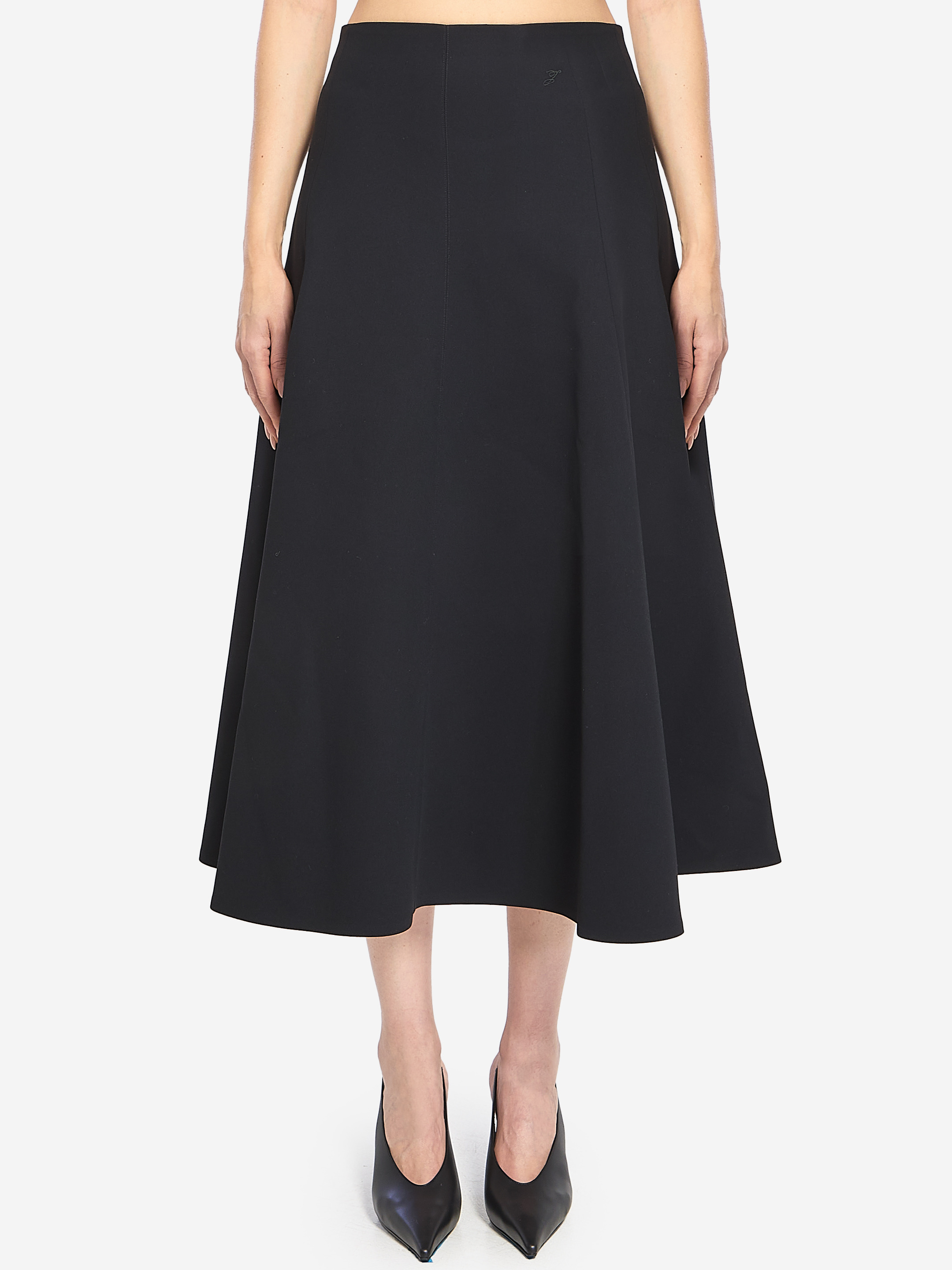 Flared maxi skirt in black polyester and viscose. Features a high waist, embroidered J detail on the front, invisible back zip, and flared hem at ankle length. Regular fit. The model is 178 cm tall and wears size 38 FR. More Info Product Number : 7567651 Product Code : SKW00635AW00632990 The model is 178 cm tall and wears size 38 FR. Composition : 70% polyester, 30% viscose Made in: Romania