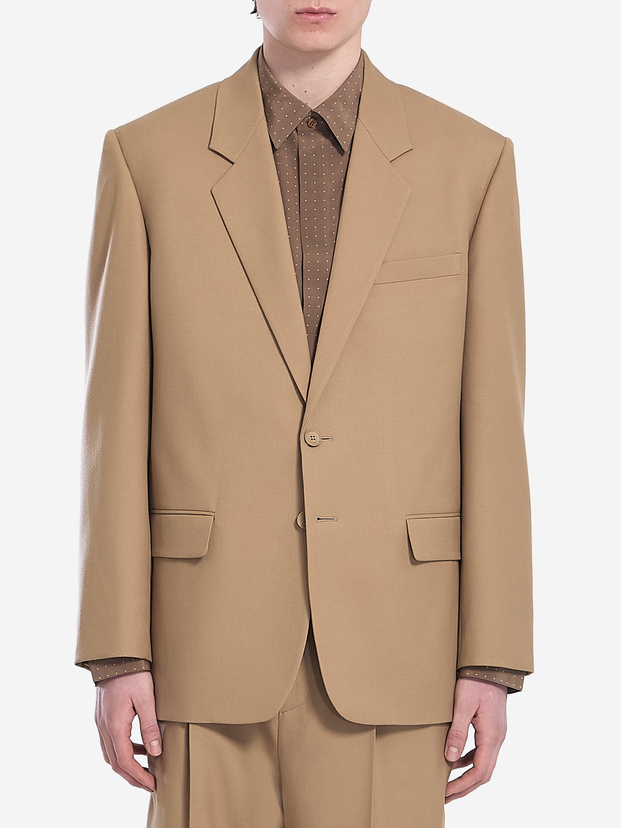 Single-breasted khaki wool jacket. It features a two-tone button closure, classic lapels, two flap welt pockets at the front, a piped chest pocket, four-button cuffs, a back vent, a silk lining, and three piped inner pockets. The model is 190cm tall and wears a size IT 50. More Info Product Number : 1146051 Product Code : 813942Y405W7557 The model is 190cm tall and wears a size IT 50. Composition : ext: 100% wool, int: 100% silk; detail: cotton, elastane Made in: Italy