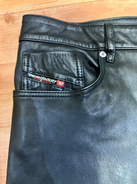Buffed sheepskin pants. • Belt loops • Five-pocket styling. Zip-fly • Logo hardware at front • Full viscose satin lining Supplier color: Black Body: 100% sheepskin. Lining: 100% viscose. SKU: 231001M189001 Gender: Mens
