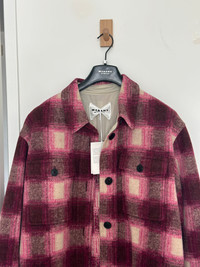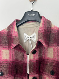 Brand new! INFO & CARE - Isabel Marant Étoile felt jacket - Checked, button-fastening front flap pockets, dropped shoulders, button-fastening cuffs, embroidered logo at back, side splits, curved longer back hem, partially lined - Button fastenings through front - 40% polyester, 27% virgin wool, 18% polyester, 15% acrylic; lining: 100% cotton - Dry clean SIZE & FIT - Length shoulder to hem: 30 inches/ 76.5cm; back: 32 inches/ 81.5cm - Midweight - Relaxed fit - Model is 5'11"/ 180cm and wears a size UK8