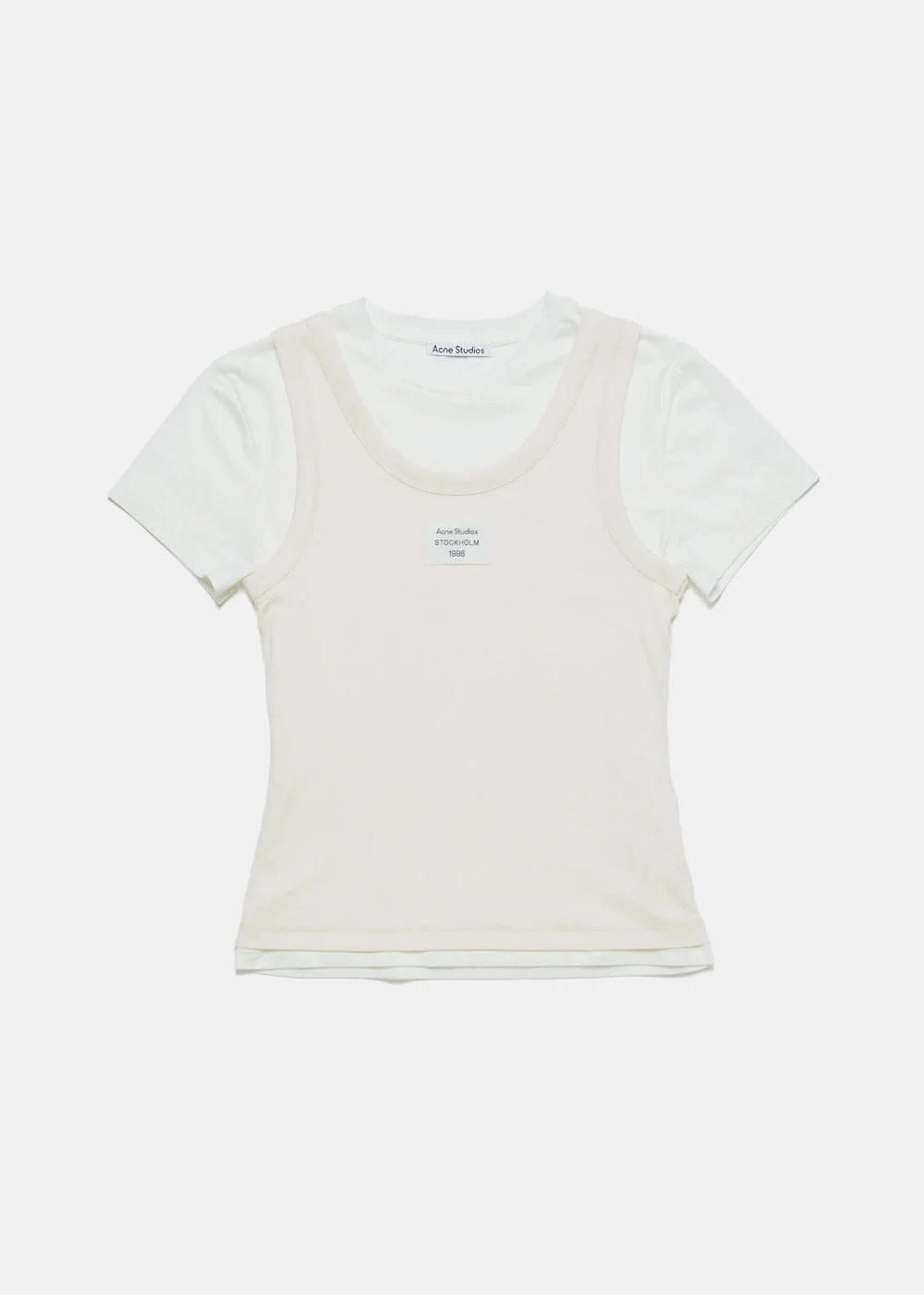 Layered t-shirt features an Acne Studios logo label at the front. Constructed with a fitted t-shirt and tank top. Fitted fit Crew neck Layered construction Acne Studios logo 90% Cotton 10% Elastane Made in Portugal.