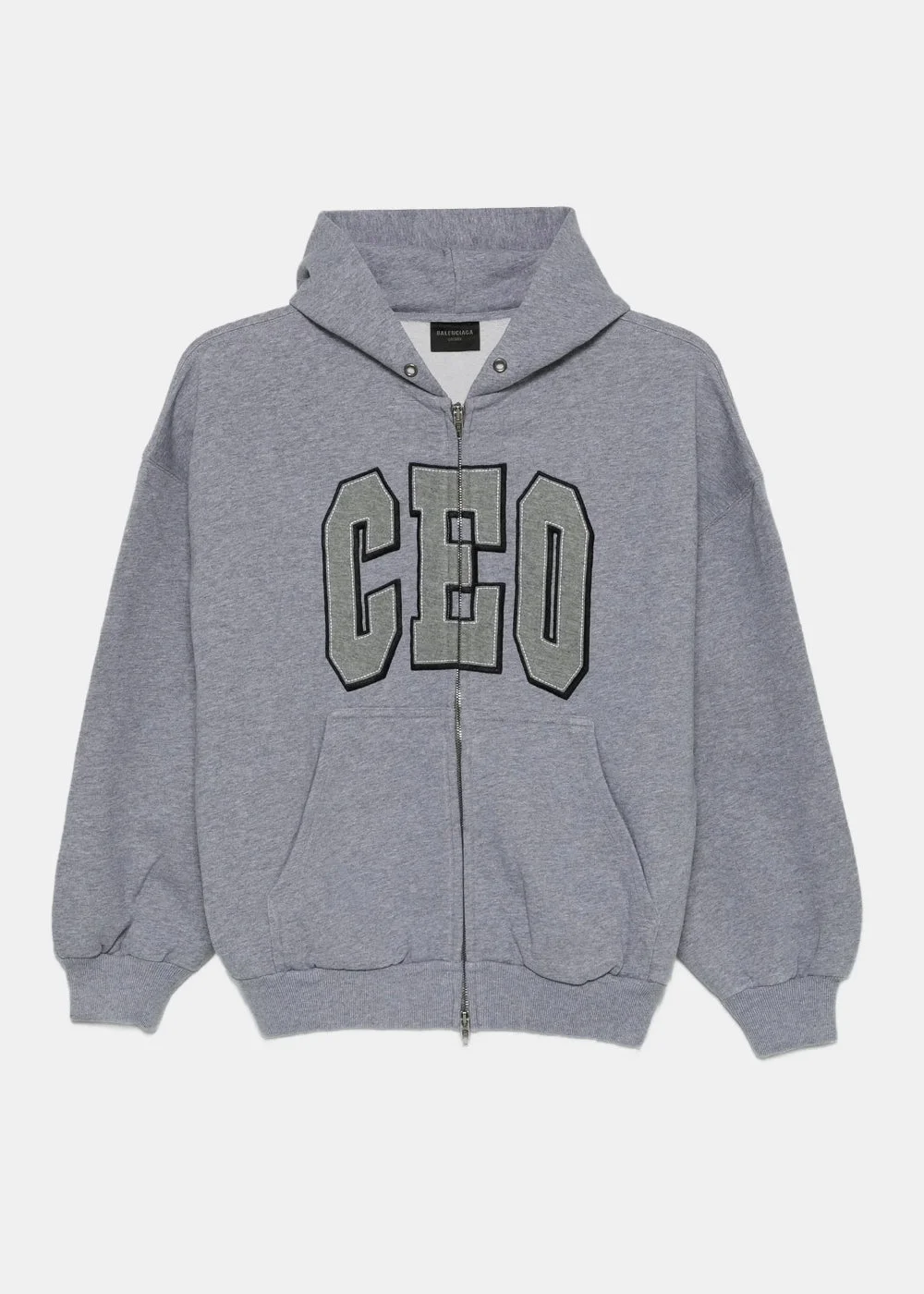Cotton small fit zip up hoodie in grey. Zip fastening Long sleeves CEO-patch 100% Cotton Made in Italy.