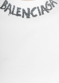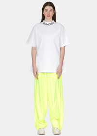 Short-sleeved t-shirt in white featuring curved waistline. Black Logo print at rib-knit crewneck collar. 100% Cotton. Made in Portugal.