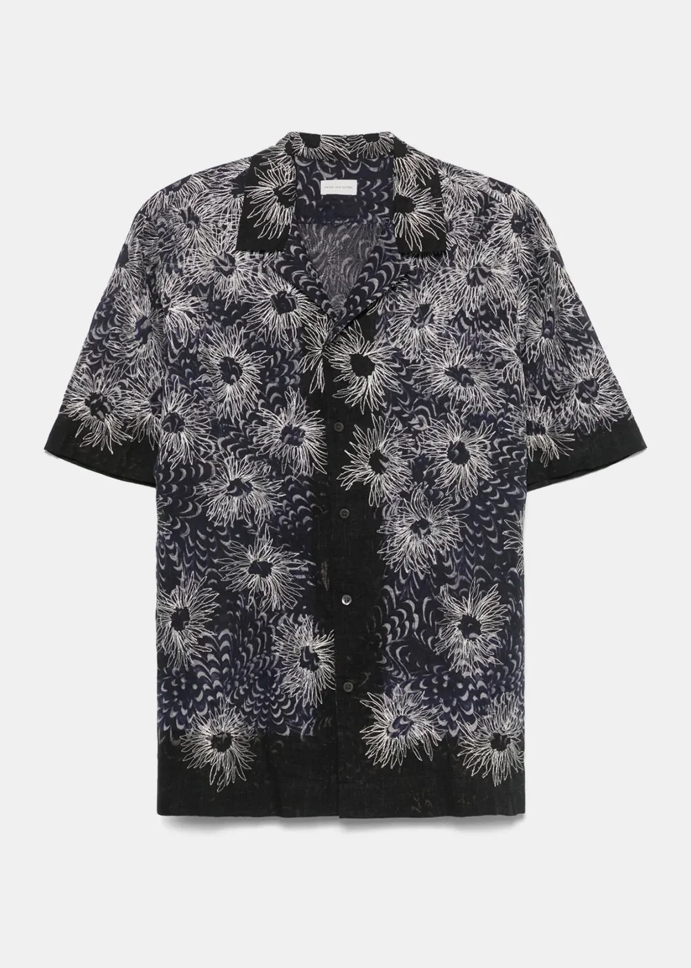 Cotton Carltone shirt in navy. All-over embroidery Button closure Short sleeves 100% Cotton Made in Tunisia.
