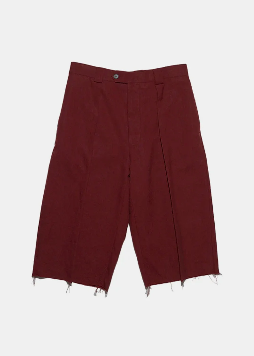 Linen Boiler Room Shorts in red. Mid-rise Button fly Button closure pockets at the back Raw hem 100% Linen Made in Italy.