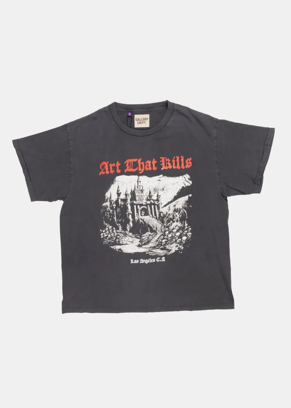 Cotton castle-graphic t-shirt in black. Graphic print Crew neck Short sleeves 100% Cotton Made in the United Status.