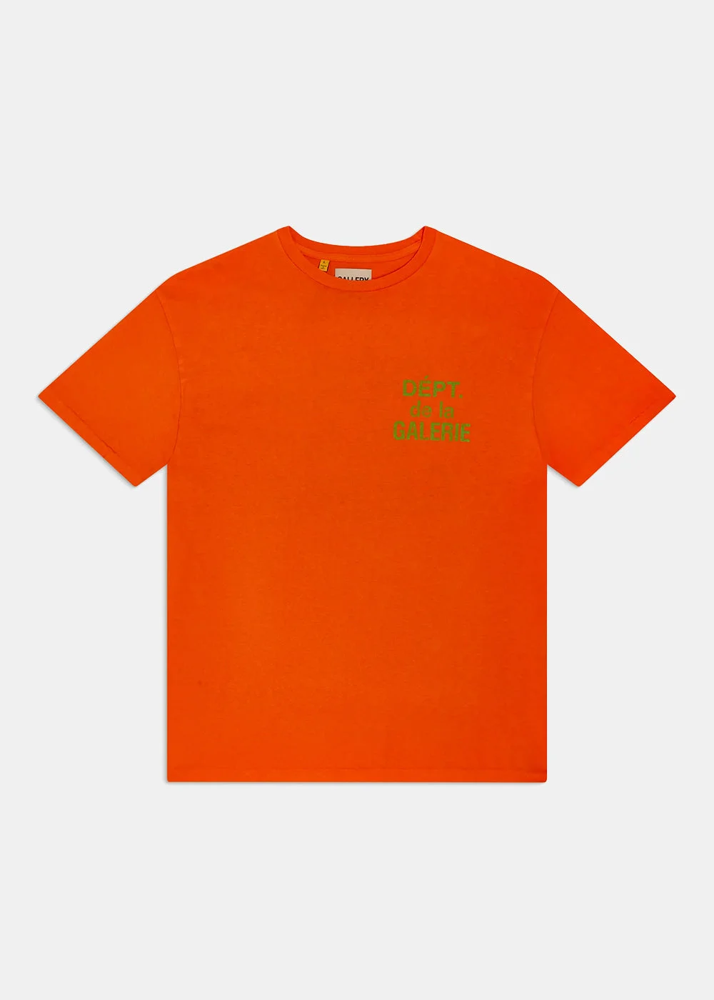 Cotton logo t-shirt in orange. Crew neck Short sleeves Text print 100% Cotton Made in the United States.