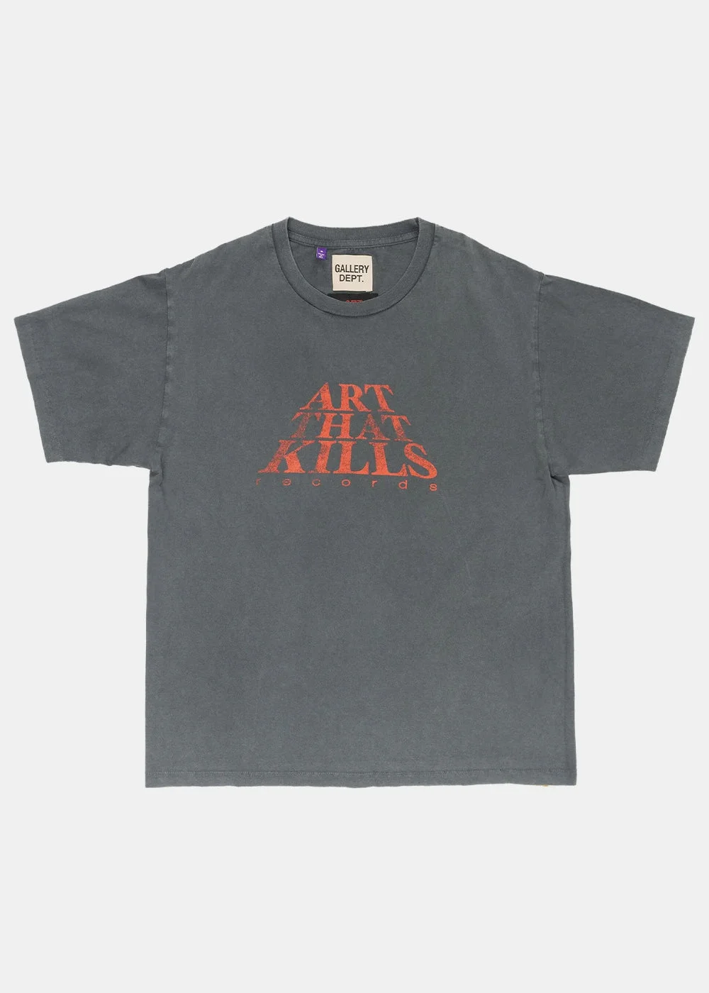 Cotton logo-print t-shirt in vintage black. Short sleeves Crew neck Glitter lettering 100% Cotton Made in United States.