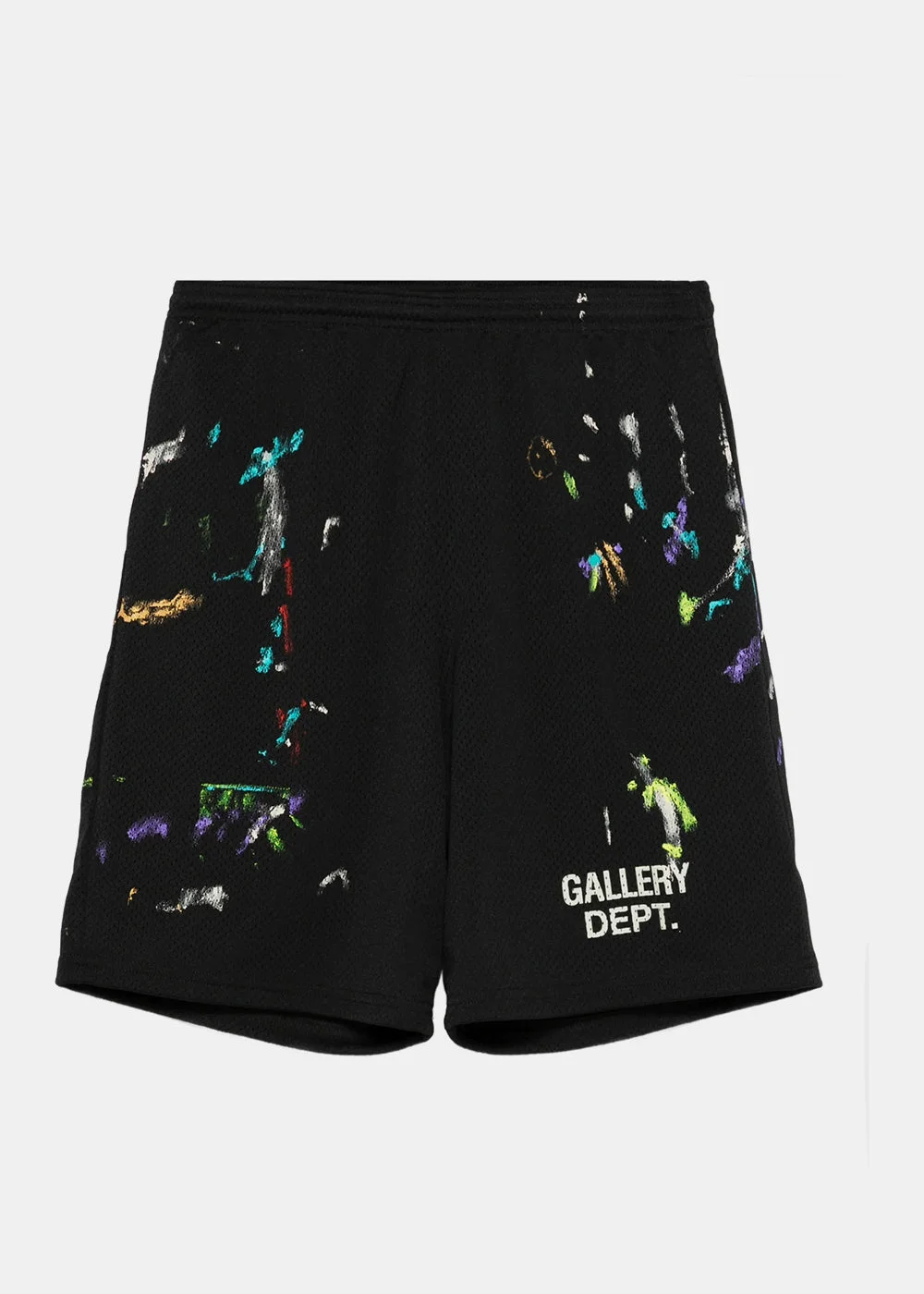 Polyester gym shorts in black. Printed Logo lettering 100% Polyester Made in the United States.