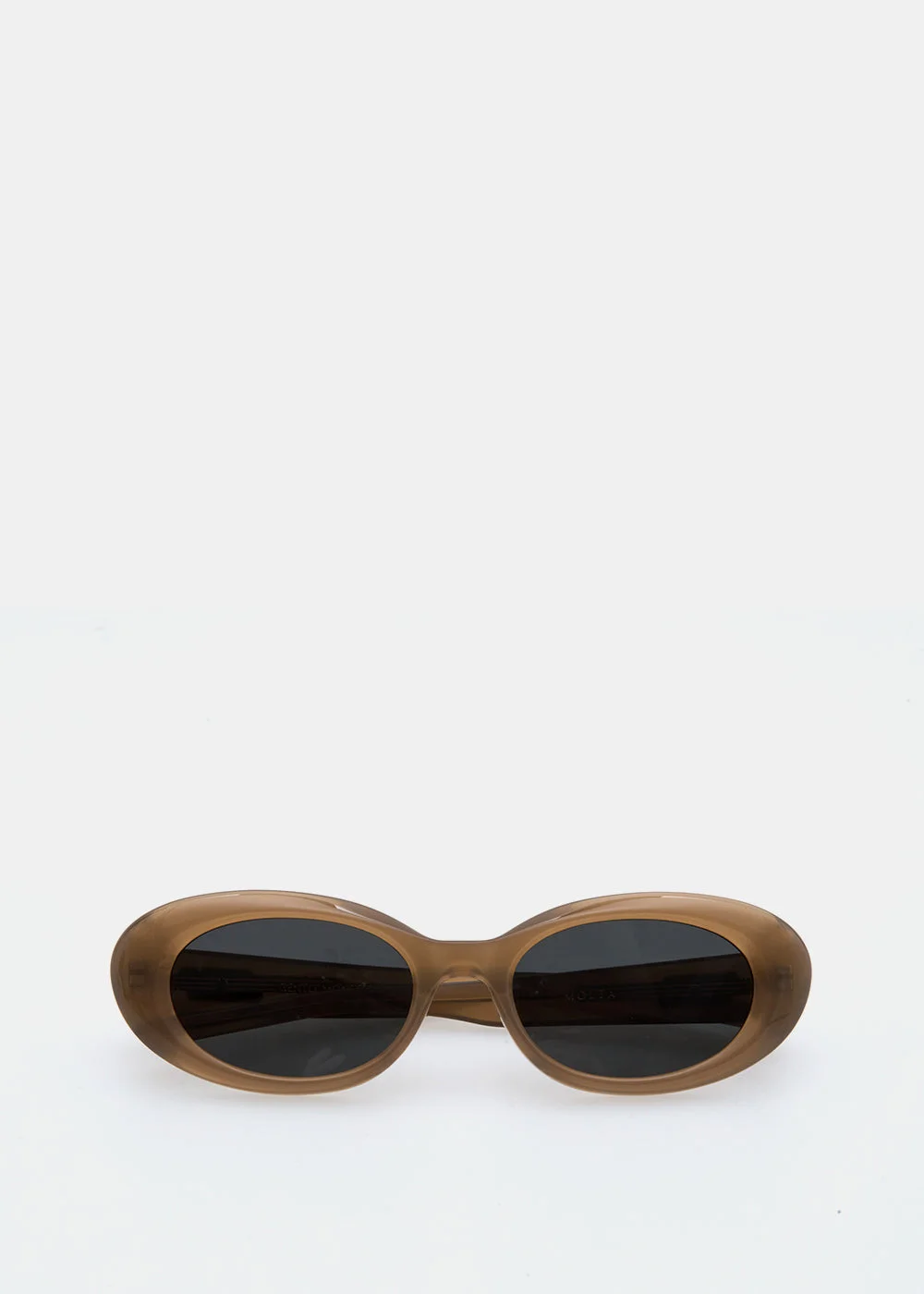Molta BRC9 sunglasses from Gentle Monster’s 2024 Collection. This piece features a voluminous, stylish round shape, a soft brown frame, and an iconic metal detail on the translucent temples. 100% Acetate Made in China.