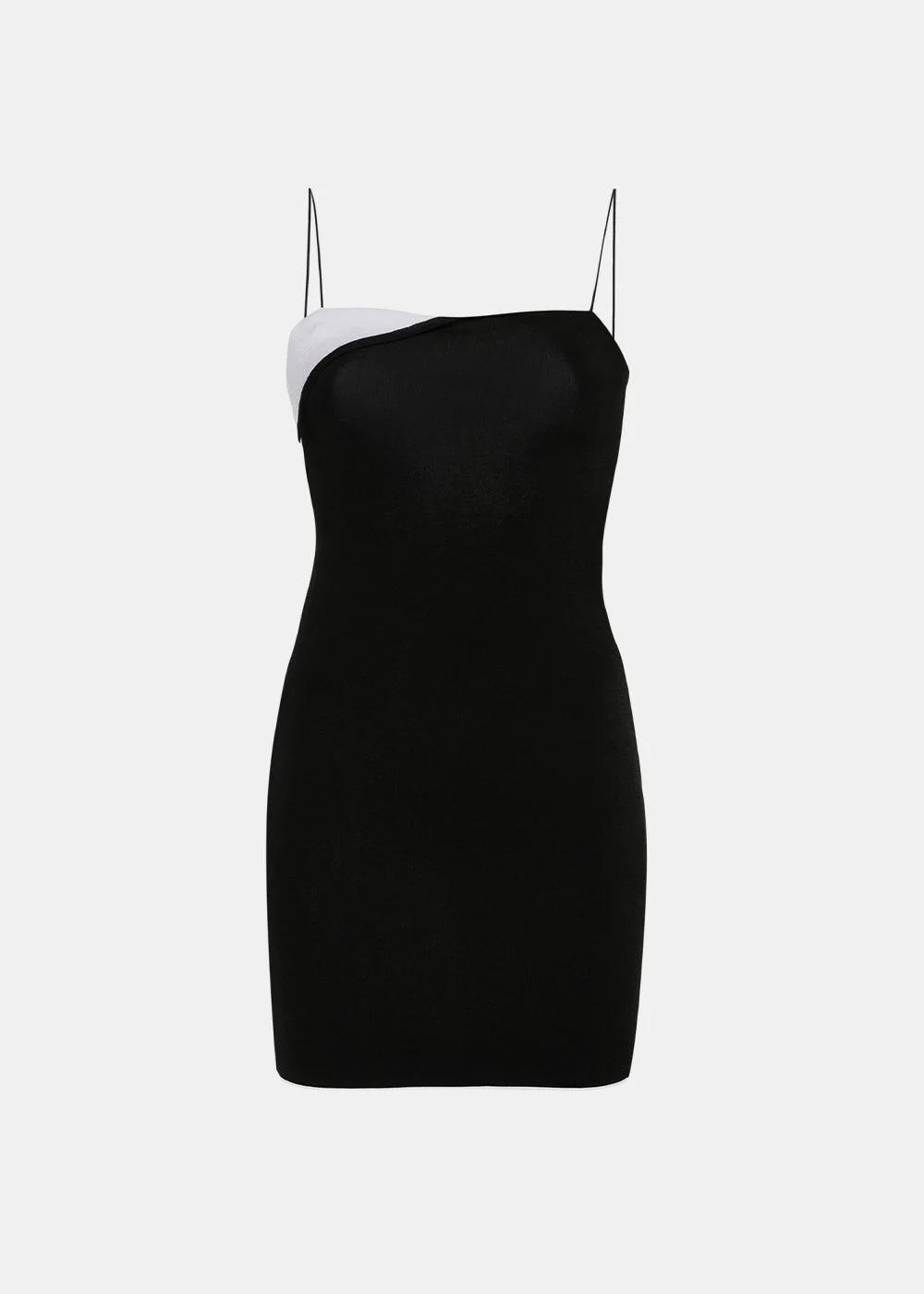 Les sculptures 'La mini robe Aro' minidress in black. Asymmetric neck Contrast trim at hem Fixed spaghetti straps Silver-tone hardware at back 94% Viscose 6% Polyester Made in Portugal.