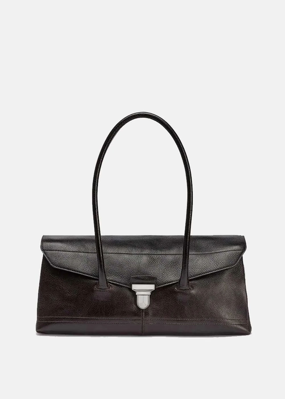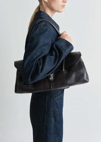 Glossy vegetable leather shoulder gear bag in espresso. Foldover top Two long top handles Partitioned compartment Internal zip-fastening pocket 100% Cow Leather Made in Spain.