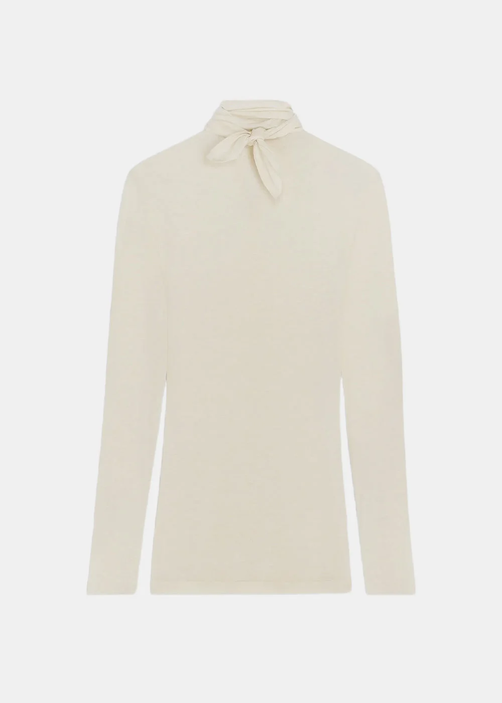 Cotton high neck top in pearl white. High tied neck Long sleeves Keyhole opening 100% Cotton Made in Italy.