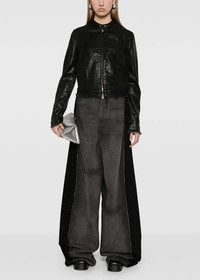 Wide-leg denim in wolf grey. Front button closure with belt loops Classic five-pocket style Side stripe detailing and rear logo patch Signature single-stitch logo at the back Wide-leg silhouette 65% Polyester 35% Cotton Made in Italy.