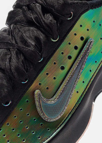 Nike Air Superfly SP TM Sneaker in black, "Photo Blue", and "Fierce Purple". Standard fit US women’s sizing Buy 1.5 sizes up for US men’s sizing Lace-up front Iridescent leather and suede upper Rounded toe Interchangeable velcro swooshes Low profile silhouette Gradient perforations racing along the sidewalls Grippy tread molded with spike-style lugs under the forefoot Air cushioning For his first collaboration with Nike, fashion designer Tomo Koizumi brings his luscious ruffles and vibrant colours to the Superfly. Tomo's signature use of dynamic colour comes to life on the shoe's upper, which shifts with each step and flex. Multiple Swooshes, including ruffled options, let you add your own design choice to the look. The Multi-Colour theme continues with the outsole and branding for a bottom-to-top full-palette experience. Already a favourite of celebs and museums, now you can have a Koizumi in your personal collection. Made in Vietnam.