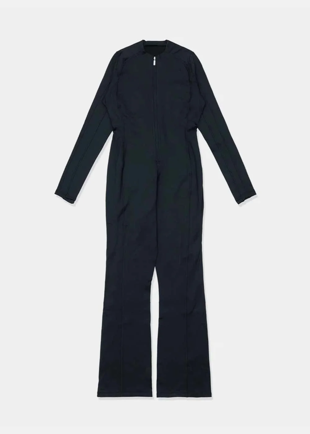 Women's woven jumpsuit in black. Made of soft Stretchy and water-repellent fabric Slim fit Self-bonded neckline and zip guard Flattering design lines keep 63% Nylon 37% Spandex Made in Vietnam.