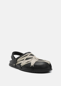 Calf leather megalaced mule in black. Rear touch-strap fastening Ridged rubber sole Moulded footbed Branded footbed 100% Calf Leather Made in Italy.