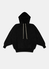 Pocket-detail hoodie in black. Alpaca wool blend Drawstring hood Kangaroo pocket Dropped shoulder Long sleeves 48% Alpaca 30% Nylon 20% Wool 2% Elastane Made in Italy.