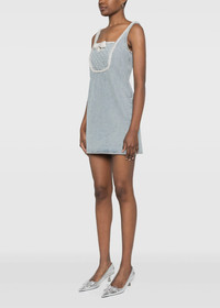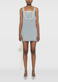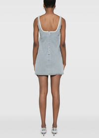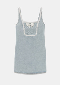 Cotton denim bow mini dress in light blue. Rear zip fastening Two side inset pockets Square neck Sleeveless 100% Cotton Made in China.
