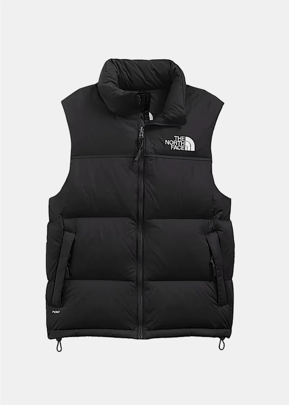 Recycled nylon 1996 Retro Nuptse vest in black. Taffeta Padded design Quilted Water-repellent Fast-drying Breathable Front zip fastening High neck Embroidered logo at the chest Sleeveless Two side welt pockets Embroidered logo to the rear 100% Recycled Nylon Made in Vietnam.