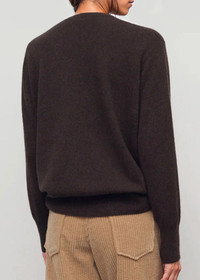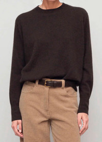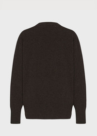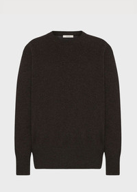 Leilani sweater in brown melange. Classic crewneck sweater in soft cashmere Relaxed fit Seamless construction Ribbed neckline, cuffs, and hem 100% Cashmere Made in Italy.