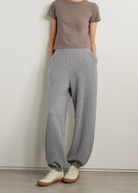 Cashmere Liyana pants in gray melange. Luxuriously soft Relaxed tapered legs Elasticated waistband 100% Cashmere Made in Italy.