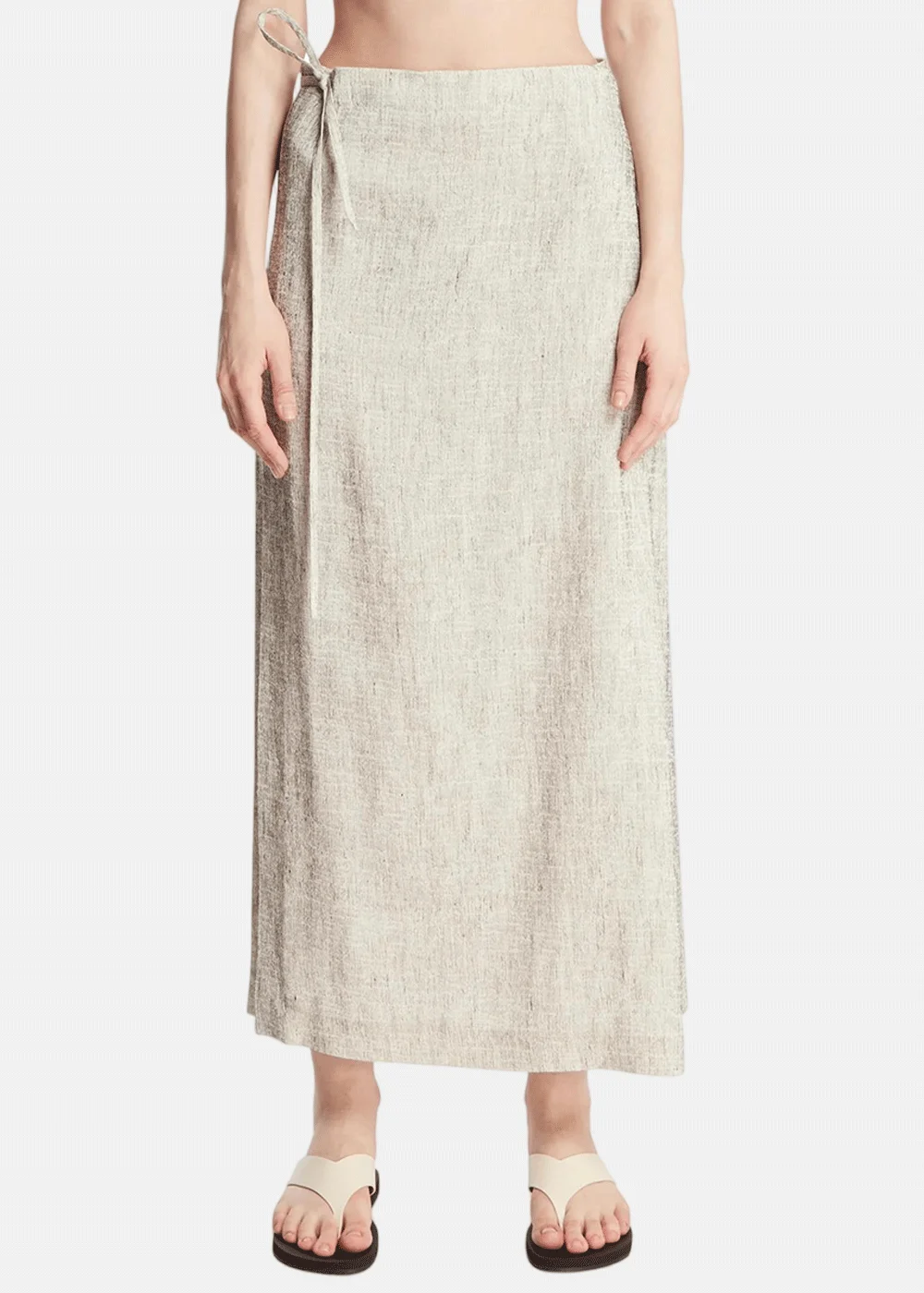 The Row white linen and silk skirt. White linen and silk, cotton lining, regular waist, wrap construction. Side slit, regular fit. 64% Linen, 36% Silk Made in Italy.