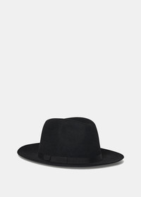 Classic black fedora hat in felted rabbit fur. Wide brim Crown shape 100% Rabbit Fur. Made in Italy.