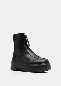 Calfskin zipped boots in black. Round toe Front zip fastening Platform sole Chunky rubber sole Ankle-length 100% Calfskin Made in Italy.
