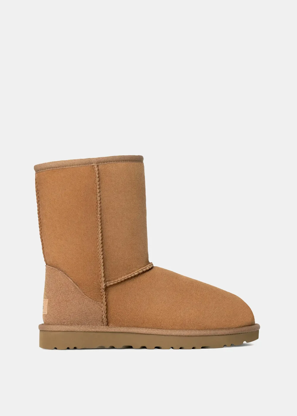 Classic short II boots in chestnut. Slip-on style Ankle-length Logo patch to the rear Round toe EVA midsole Signature Treadlite by UGG™ outsole 100% Suede Made in Vietnam.