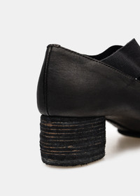Ballerina square toe elasticated pumps in black. Branded insole Elasticated straps Slip-on style Low block heel 100% Calf Leather Made in Italy.