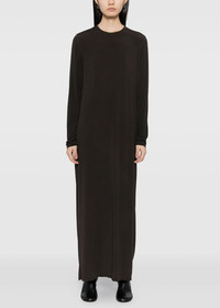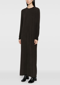 Modal blend scoop-back dress in brown. Detachable strap Crew neck Long sleeves 93% Modal 7% Elastane Made in Italy.